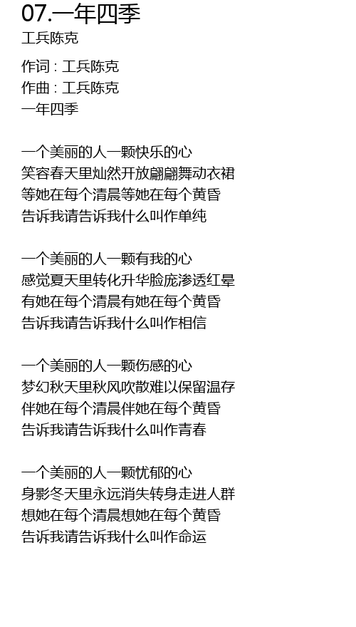| 作词 : 工兵陈克 | |