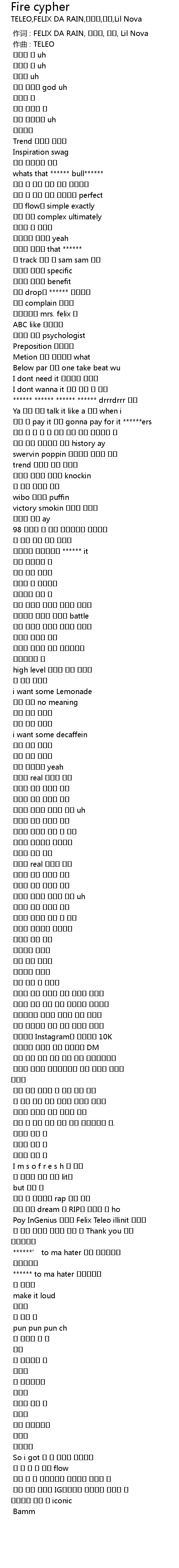 | [00:00.000] | 作词 : FELIX DA RAIN, 강민승, 천설, Lil Nova |