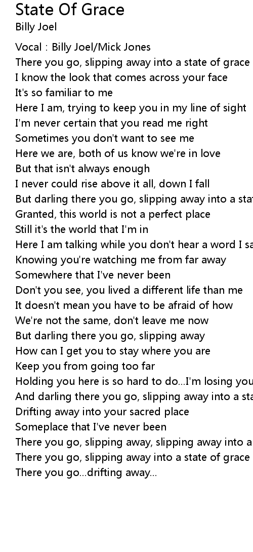 | There you go, slipping away, slipping away into a state of grace | |