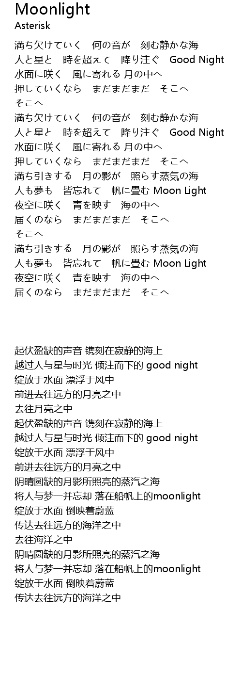 | [02:42.00] | 人も夢も 皆忘れて 帆に畳む Moon Light |