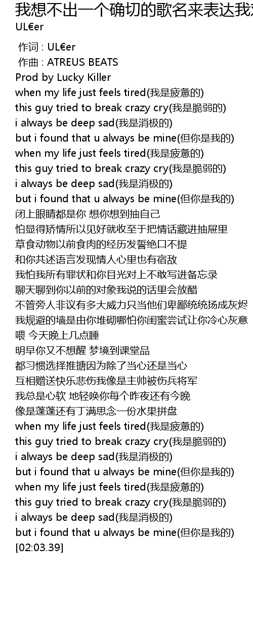 | [01:41.69] | i always be deep sad(我是消极的) |