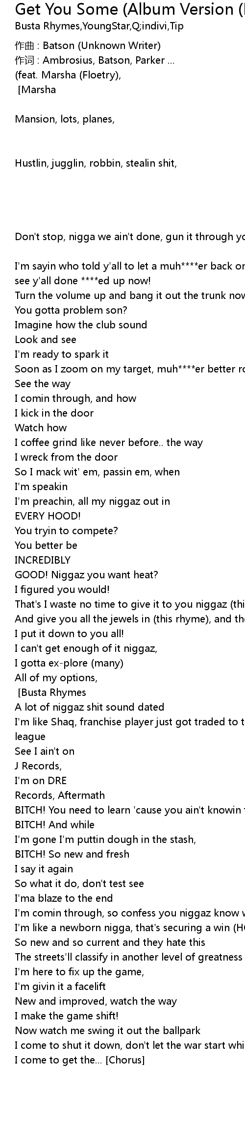 | I gotta get me plenty more... [Chorus] [Busta Rhymes] | |