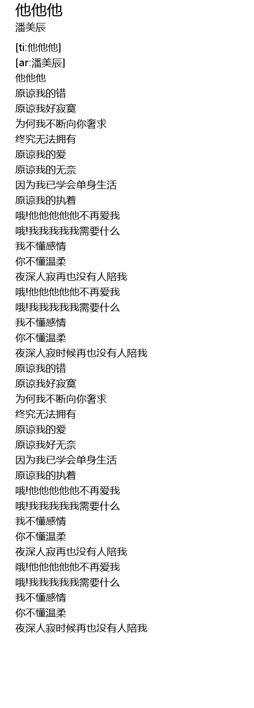 | [03:12.457] | 哦!他他他他他不再爱我 |