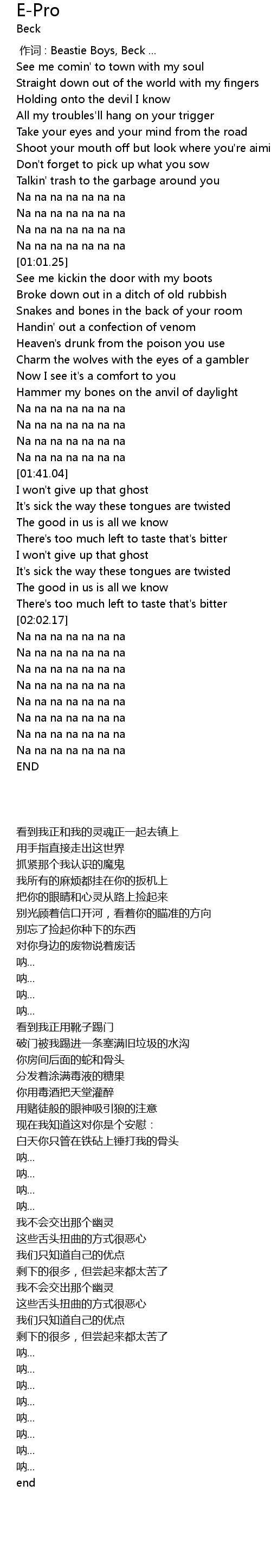 | [00:00.00] | zuò cí : Beastie Boys, Beck ... |