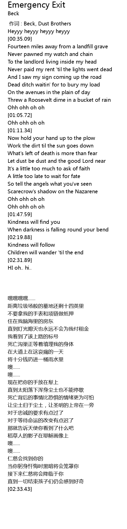 | [00:00.00] | 作词 : Beck, Dust Brothers |
