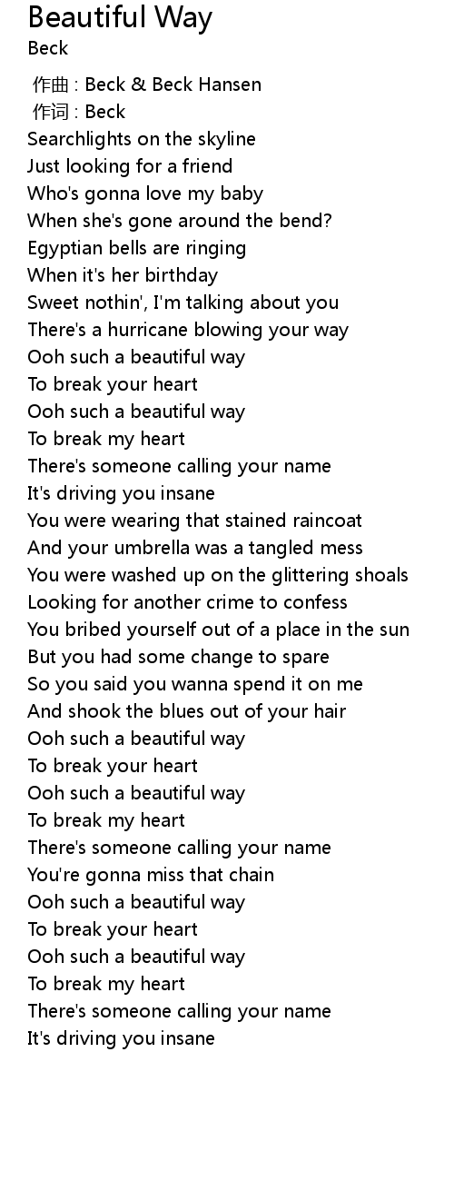 | [00:01.00] | 作词 : Beck |