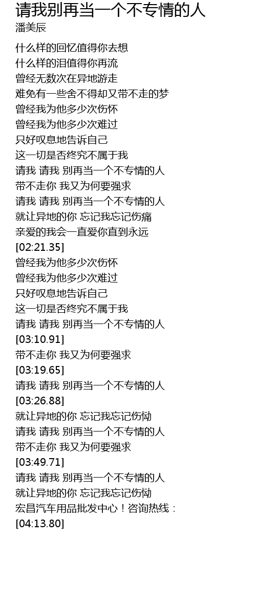 | [03:50.47] | 请我 请我 别再当一个不专情的人 |