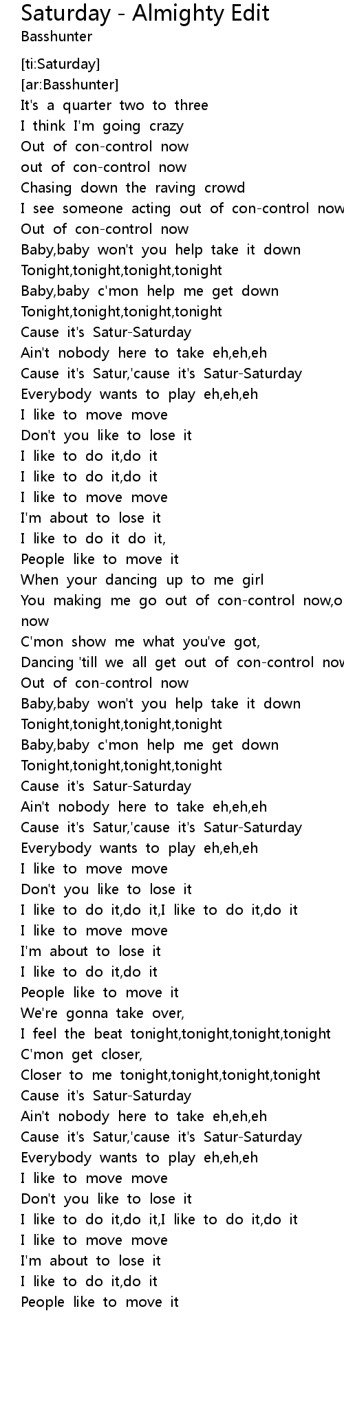 [ti:Saturday] |