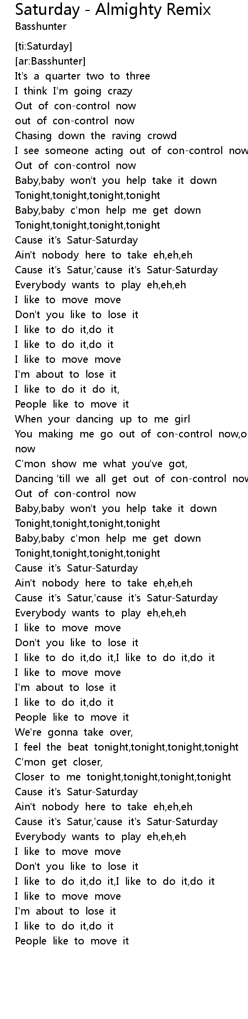 [ti:Saturday] |