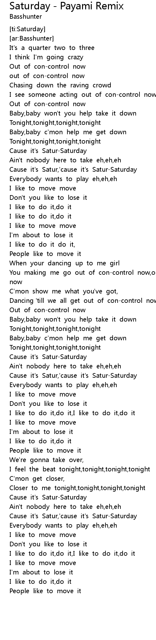 [ti:Saturday] |