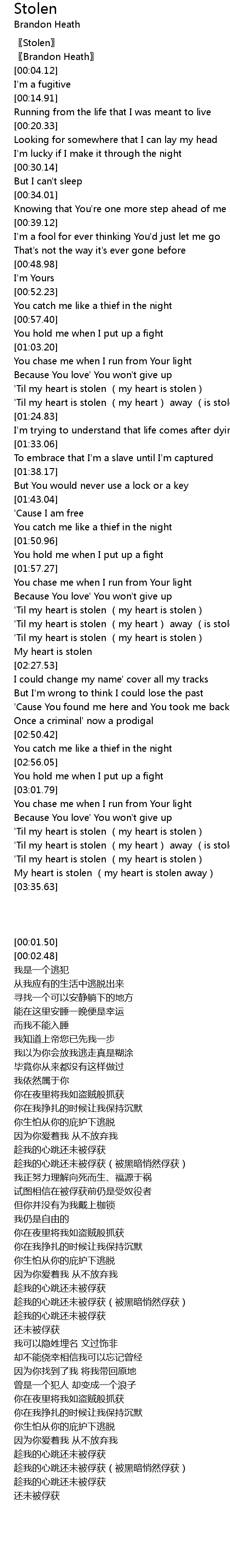 | [03:22.71] | ' Til my heart is stolen my heart is stolen |