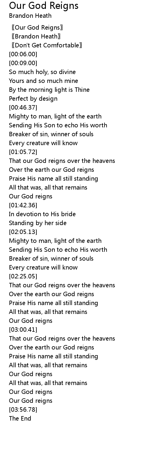 | [03:42.67] | Our God reigns |