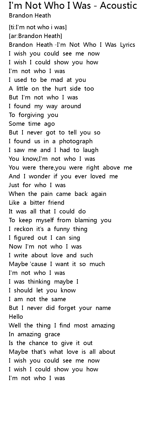 I'm Not Who I Was - Acoustic Lyrics