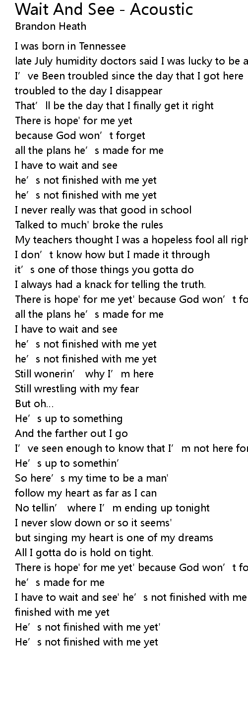 | [02:53.47] | There is hope' for me yet' because God won’t forget' all the plans he’s made for me |