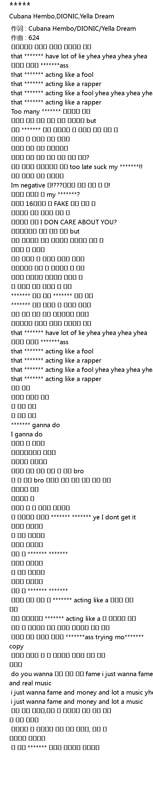 | [03:10.573] | 리얼한 척은 개뿔 풉 ******* acting like a 랩퍼인 척은 개뿔 |