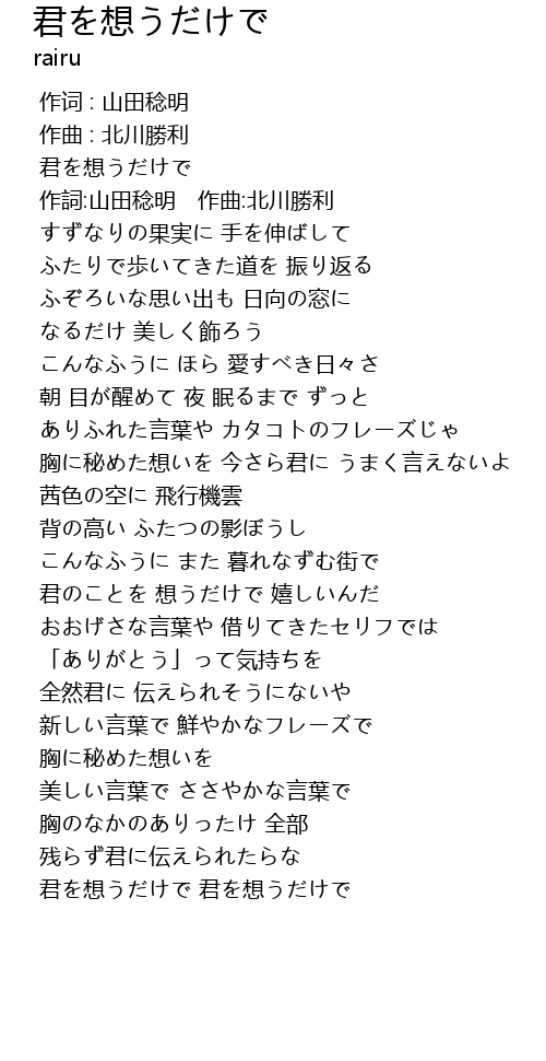 | [00:06.50] | 君を想うだけで |