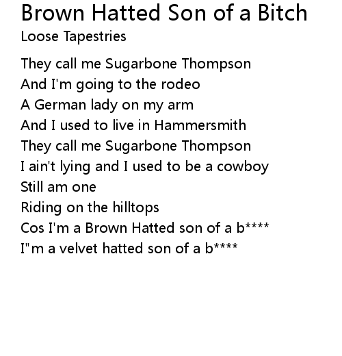 | [00:23.441] | Cos I'm a Brown Hatted son of a b**** |