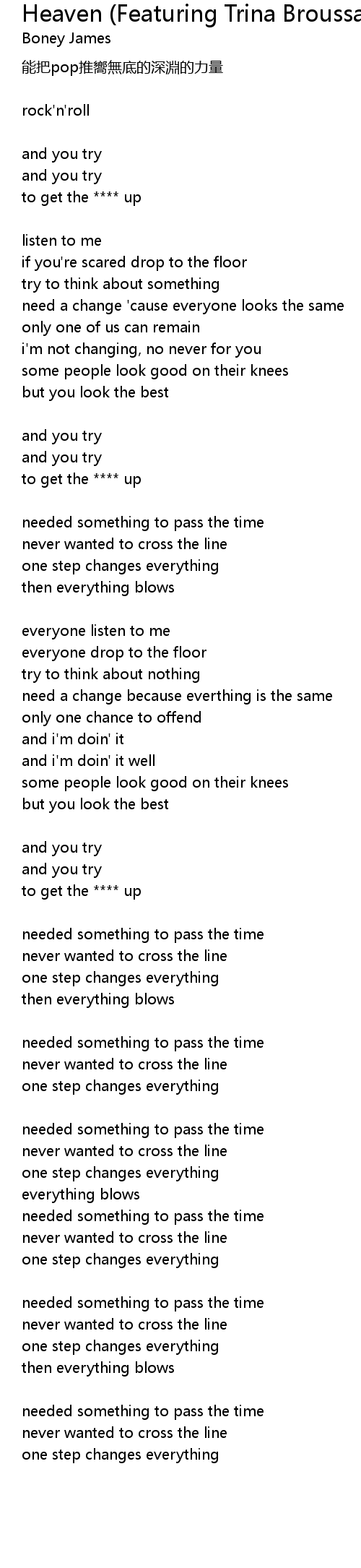 | Song | Heaven (Featuring Trina Broussard) (Album Version) |