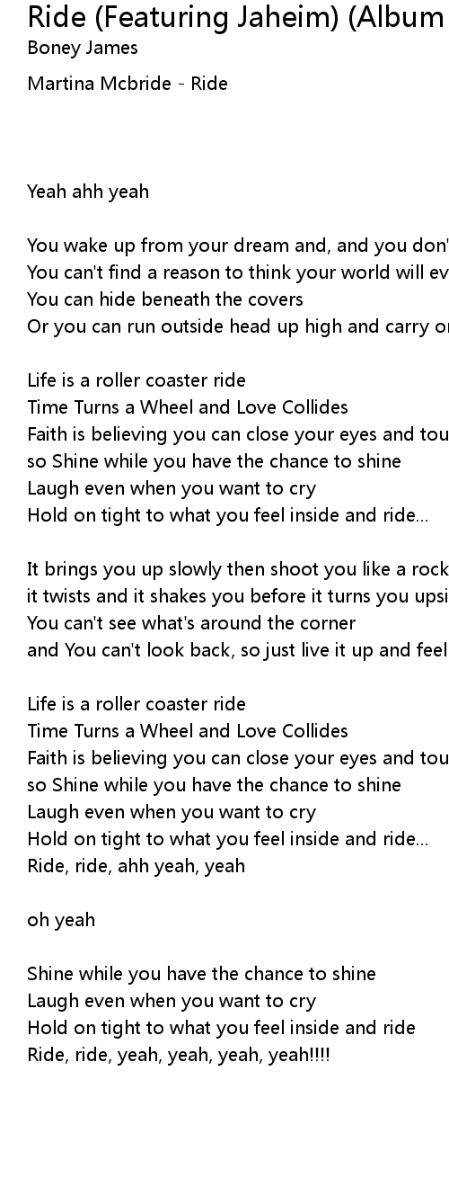 Ride, ride, yeah, yeah, yeah, yeah!!!!