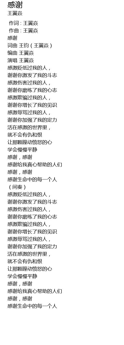 | [00:00.000] | 作词 : 王翼焱 |