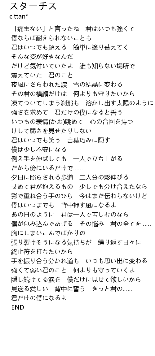 | [00:32.47] | 「痛まない」と言ったね 君はいつも強くて |