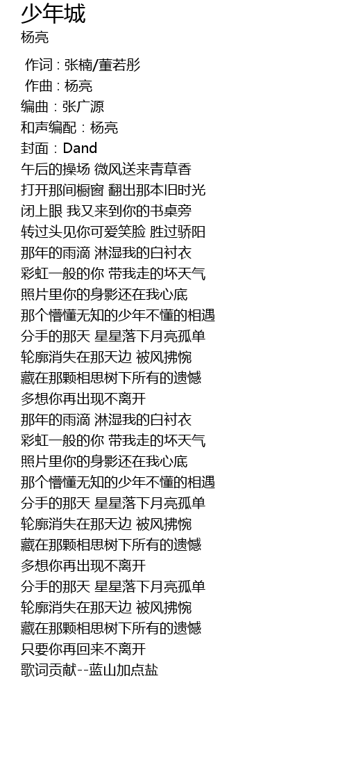 | [03:23.460] | 歌词贡献--蓝山加点盐 |