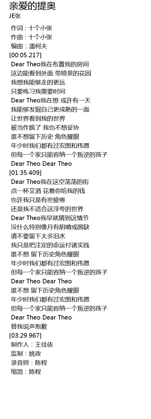 | [01:56.391] | Dear Theo我在这空荡荡的街 |