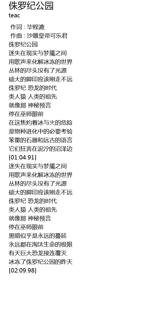 | [02:03.77] | 冰冻了侏罗纪公园的昨天 |