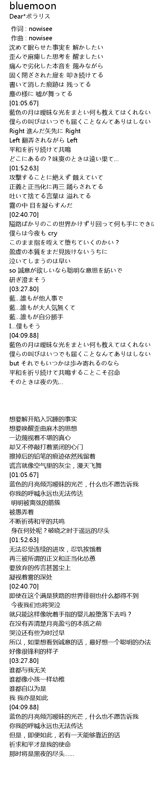 | [04:10.49] | 藍色の月は曖昧な光をまとい何も教えてはくれない |