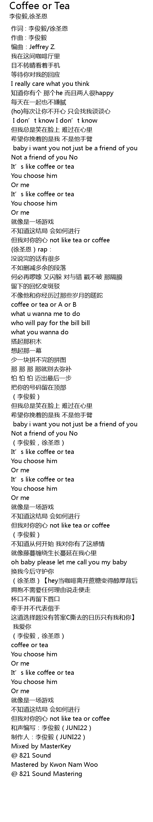 | [02:24.081] | dàn wǒ duì nǐ de xīn not like tea or coffee |