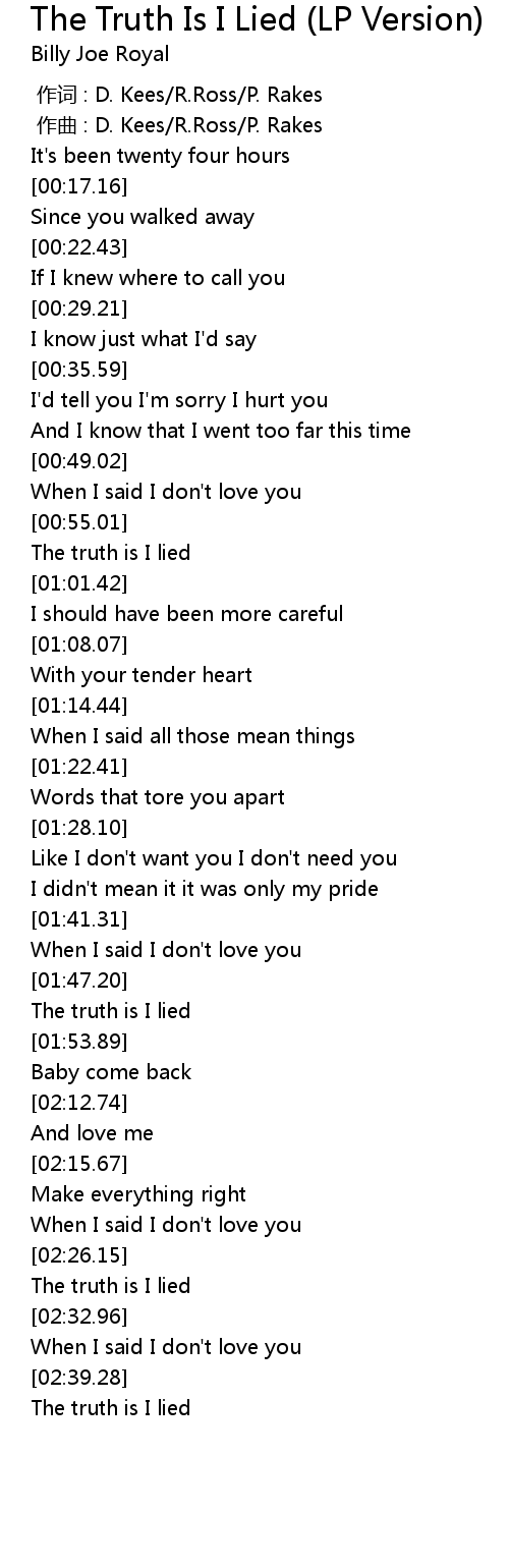 | [01:50.33] | The truth is I lied |
