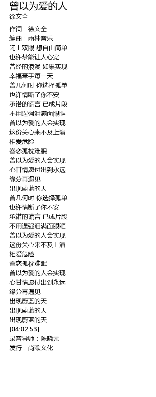 | [01:42.64] | ceng yi wei ai de ren hui shi xian |