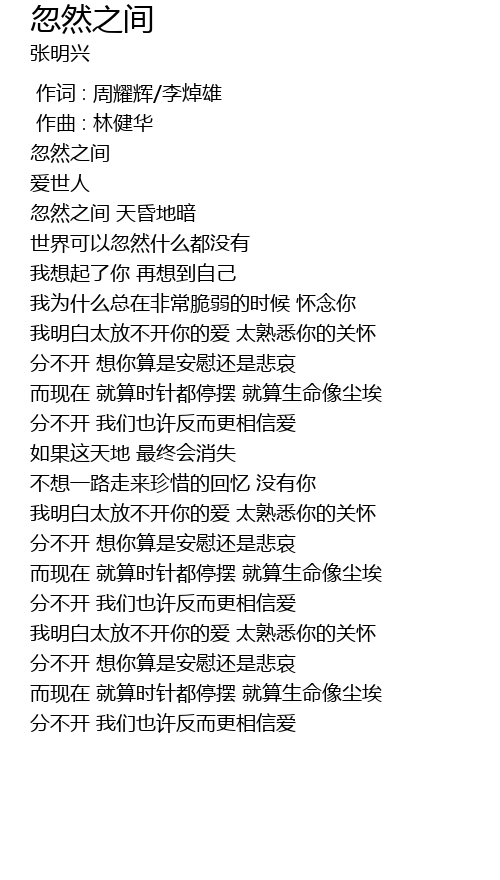 | [00:06.214] | 忽然之间 |