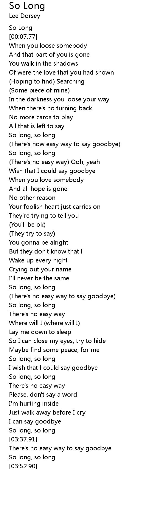 So long, so long |