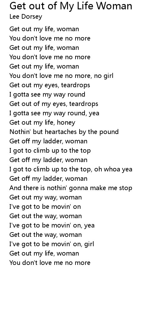 Get out my life, woman |