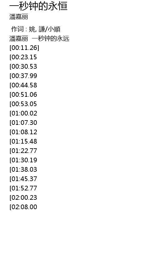 | [00:00.67] | 潘嘉丽 一秒钟的永远 |