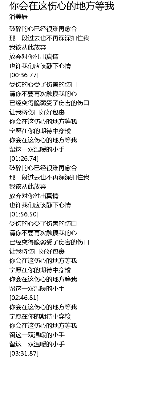 | [02:34.86] | nǐ huì zài zhè shāng xīn de dì fāng děng wǒ |