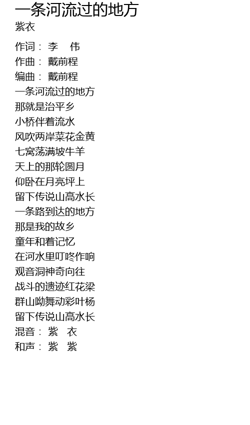 | [00:36.452] | yi tiao he liu guo de di fang |