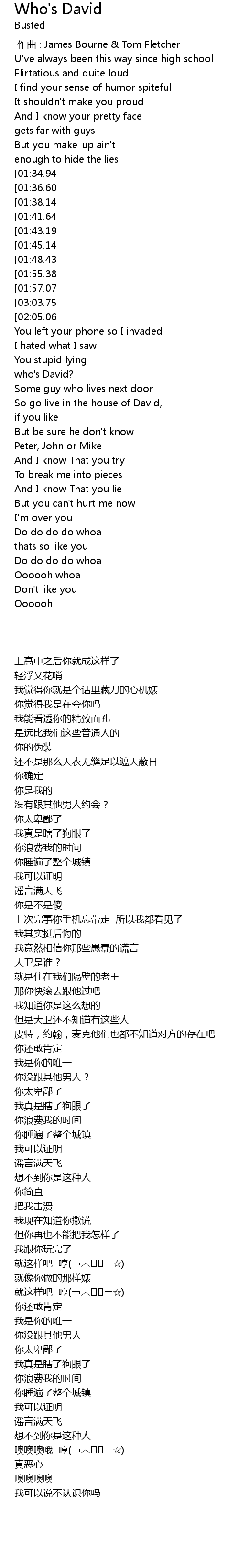 | [00:00.00] | 作曲 : James Bourne & Tom Fletcher |