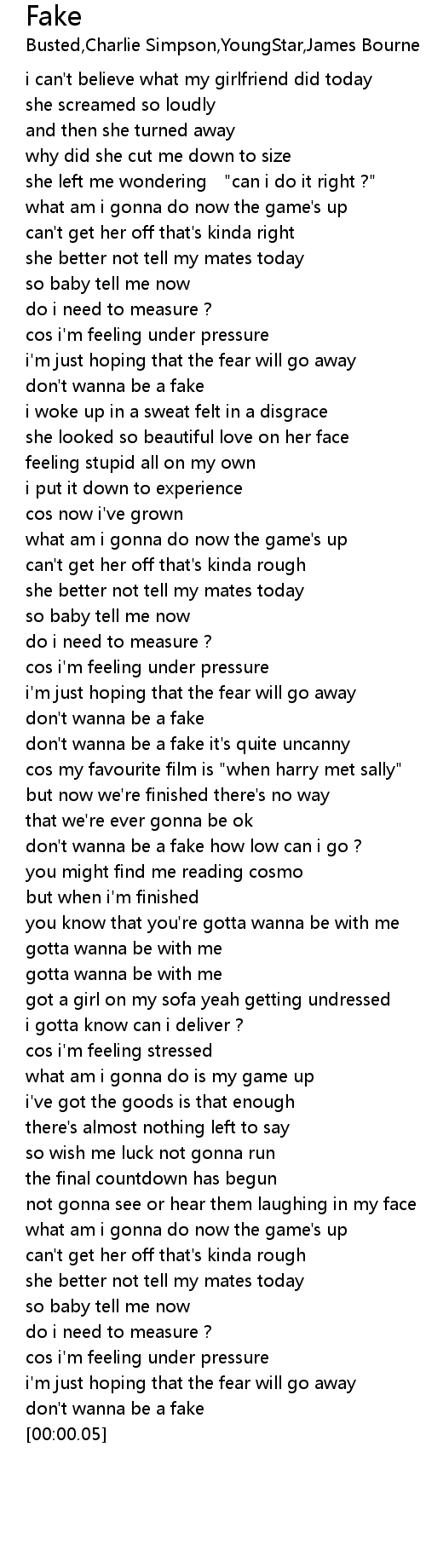 | [02:02.39] | don't wanna be a fake how low can i go ? |