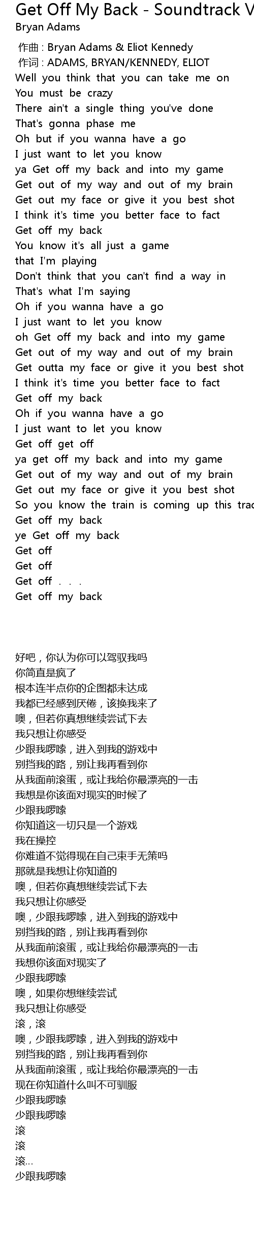 | [00:00.00] | zuo qu : Bryan Adams Eliot Kennedy |