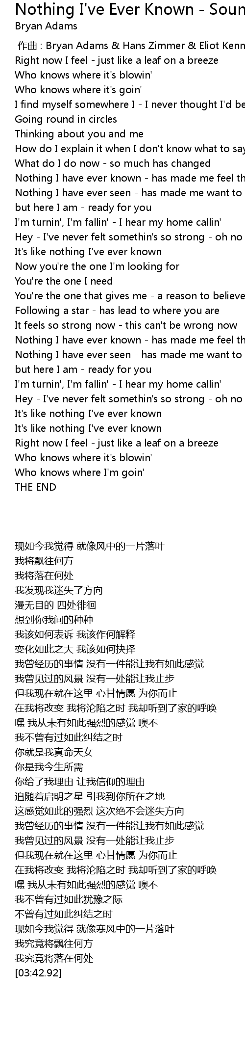 | [03:12.18] | It' s like nothing I' ve ever known |