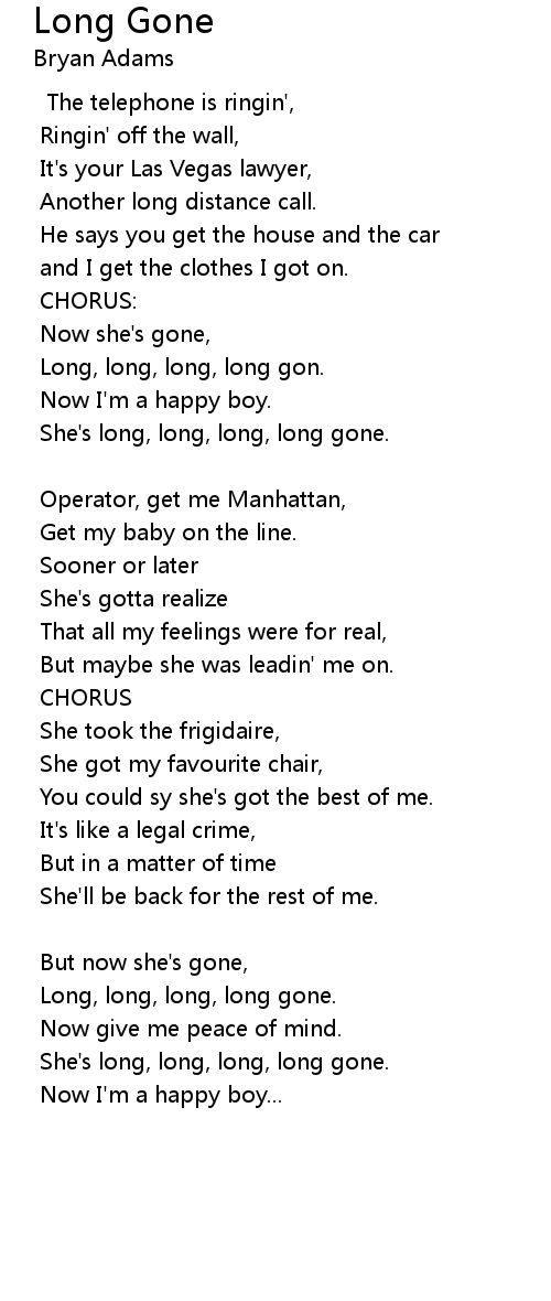 She's long, long, long, long gone. |