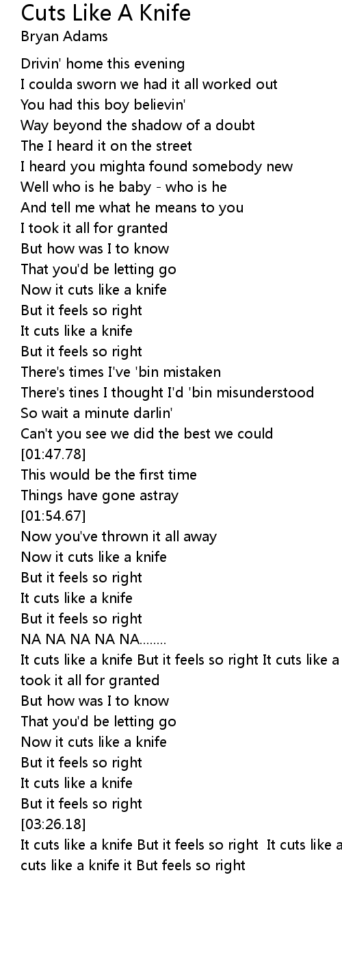 It cuts like a knife But it feels so right It cuts like a knife It cuts like a knife it But feels so right |