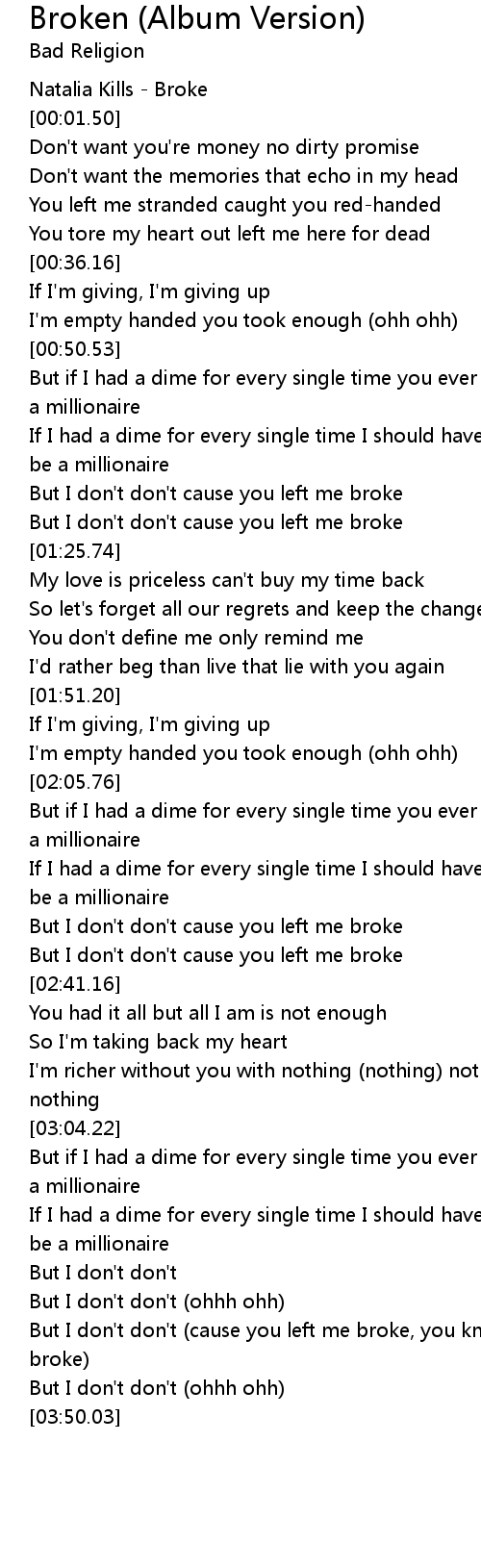 But if I had a dime for every single time you ever made me cry I'd be a millionaire |