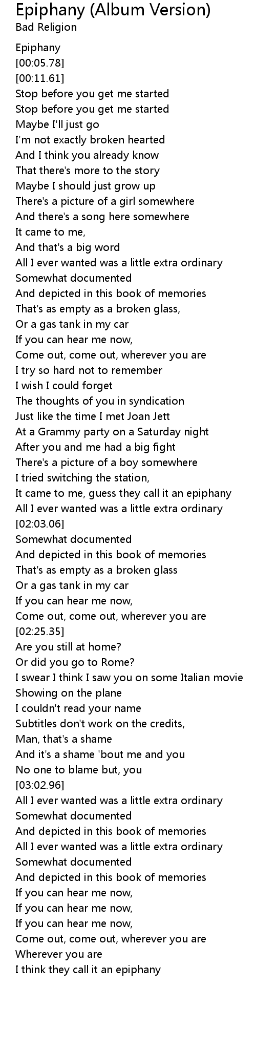 It came to me, guess they call it an epiphany |