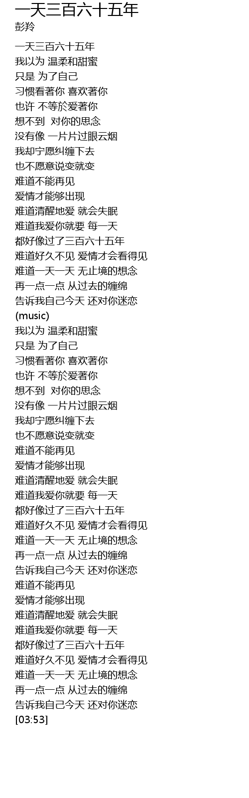 | [00:00] | yì tiān sān bǎi liù shí wǔ nián |