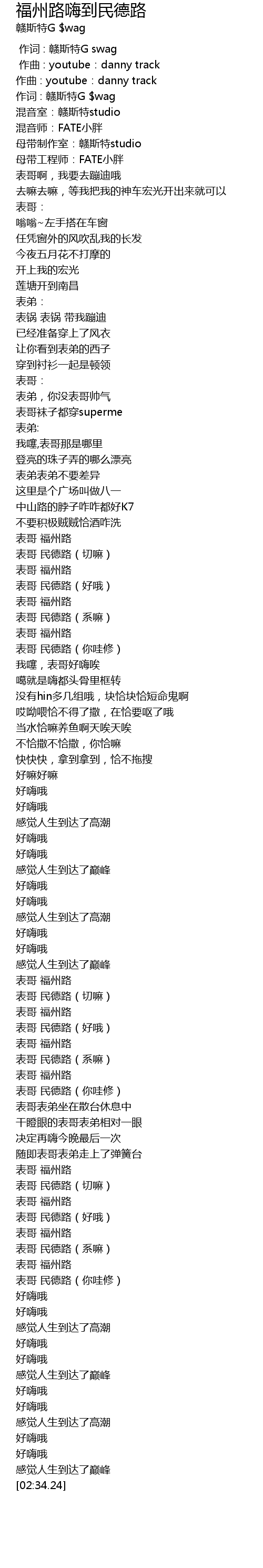 | [00:00.000] | 作词 : 赣斯特G swag |
