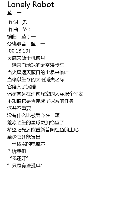 | [00:17.00] | 一辆来自地球的太空漫步车 |