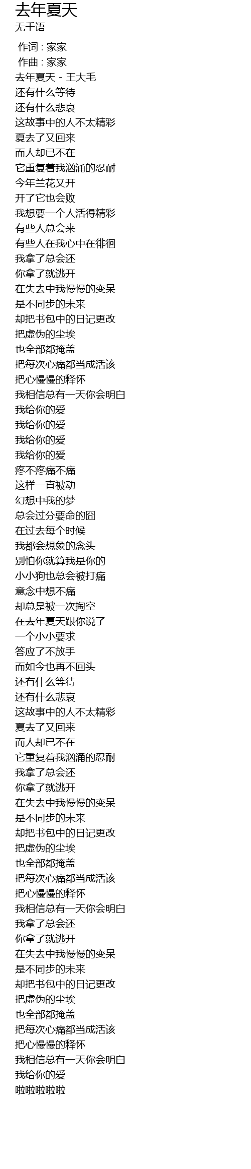 | [00:17.939] | 去年夏天 - 王大毛 |